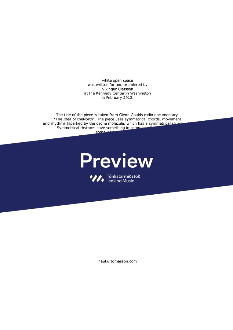 Composed for Víkingur Ólafsson & premiered by him at the Kennedy Center, Washington in February, 2013.