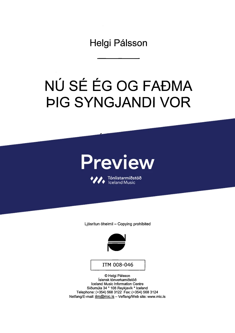 Text sampleNÚ SÉ ÉG OG FAÐMA ÞIG SYNGJAND