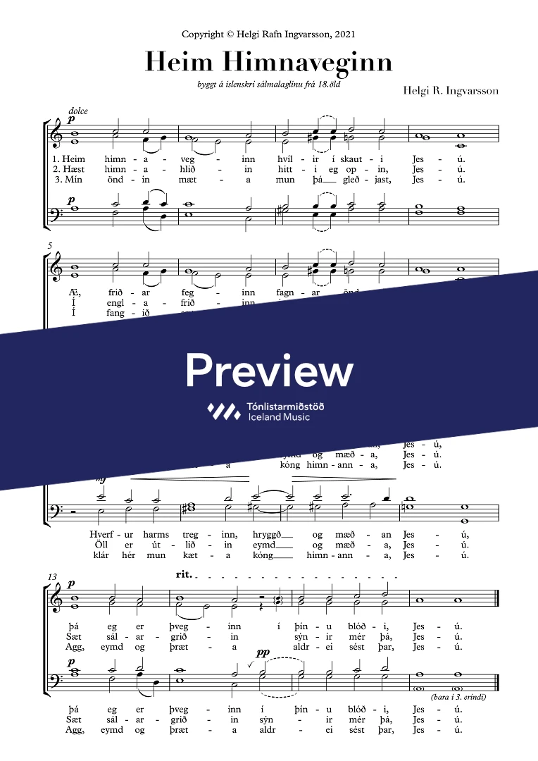 Text sampleHeim himnaveginn hvílir í skauti Jesú