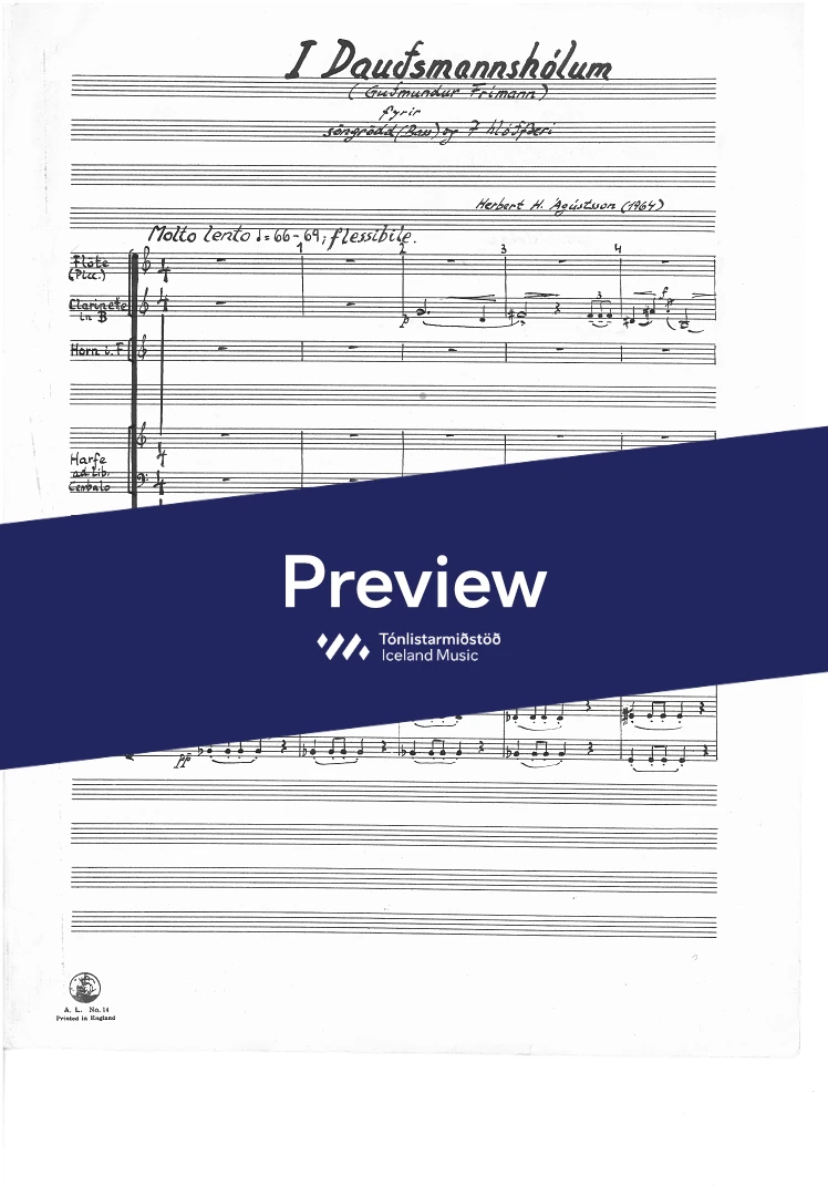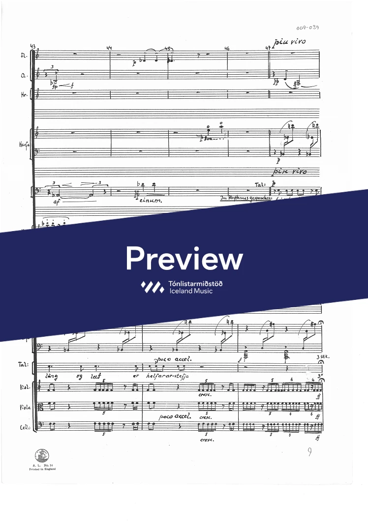 InstrumentationFlute, Piccolo Flute, Clarinets, French Horn, Harp, Male voices, Violin, Viola, Cello
