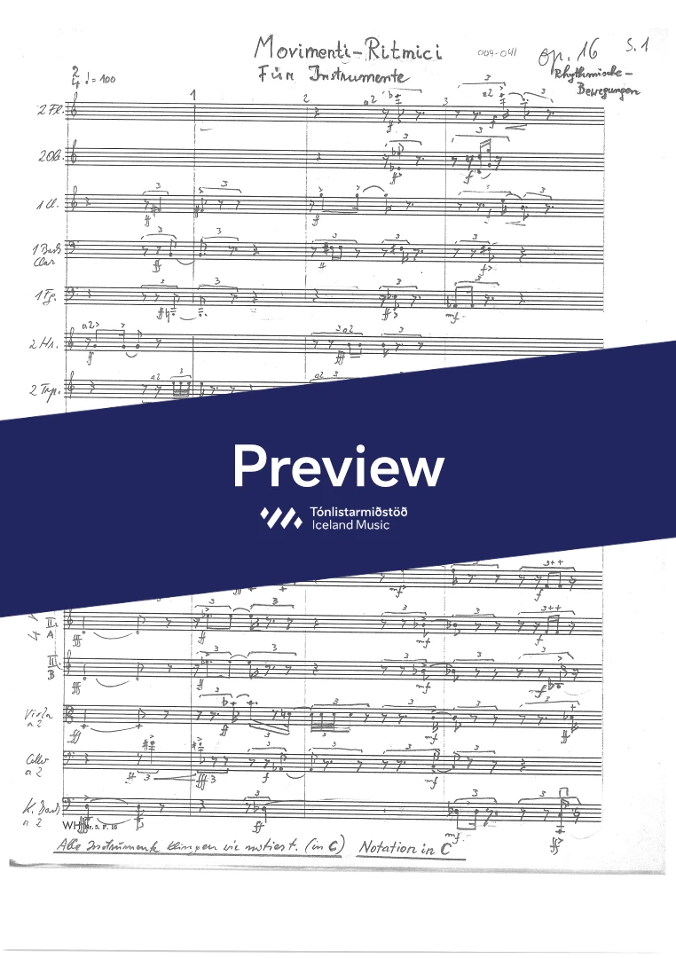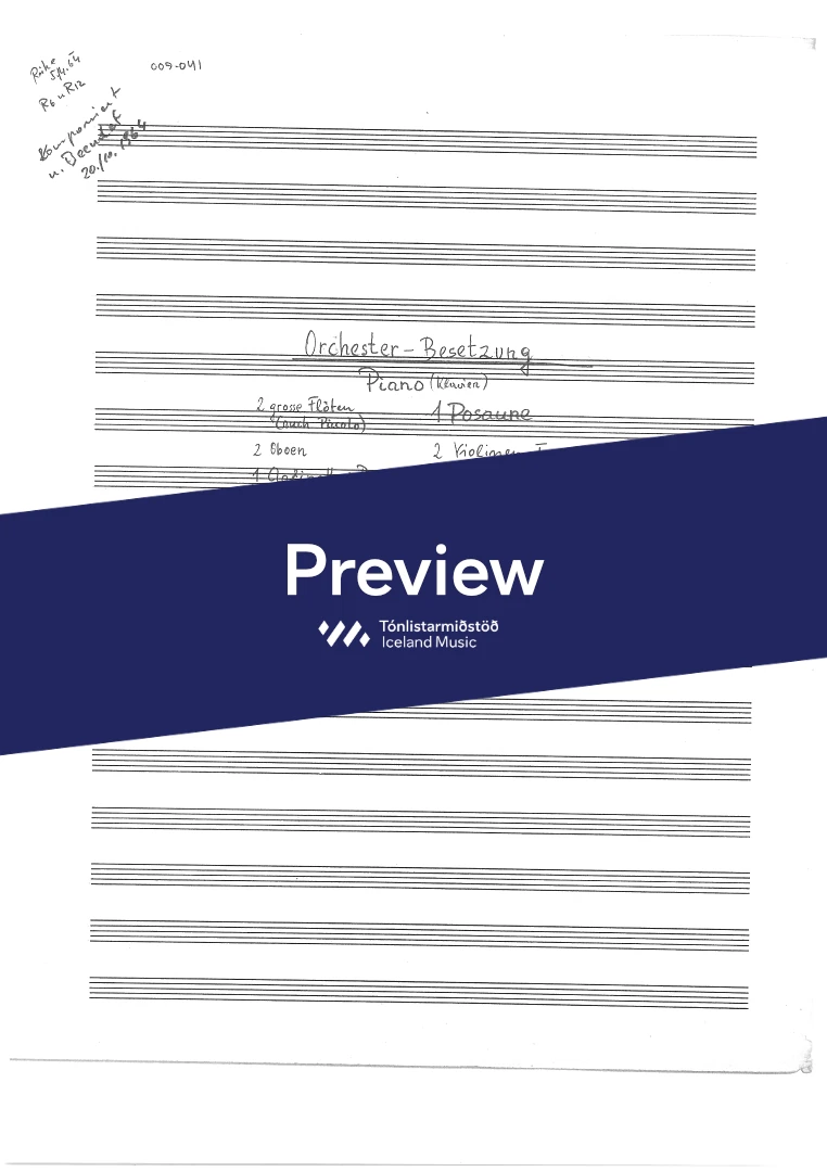 Instrumentation 2(picc),2,2(bcl),1 - 2,2,1,0 - - pno.- tmp. - vln.(4), vla.(2),vlc.(2)cb.(2)