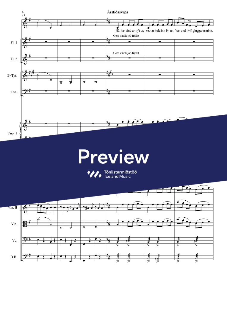 InstrumentationFlute, Clarinets, Trumpets, Alto Saxophone, Piano four hands, Strings