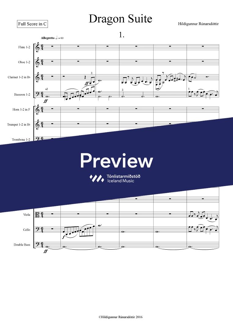 This work is an arrangement for orchestra of the organ work "The Woman and the Dragon" composed for Lára Bryndis Eggertsdóttir. The orchestral version was made for the Iceland Amateur Symphony Orchestra for performance in May 2016. Price for score only. To hire the orchestral material, please contact itm@mic.is