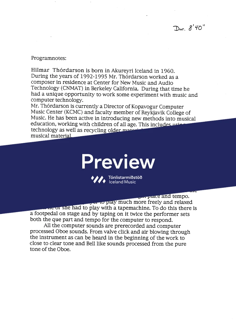 Categories Instrumental Duo, Electronic/Multimedia, Electronic/Acoustic, Chamber works