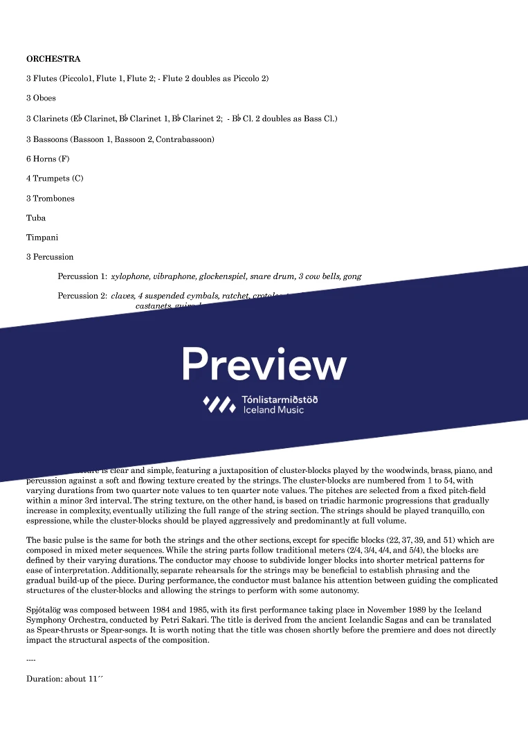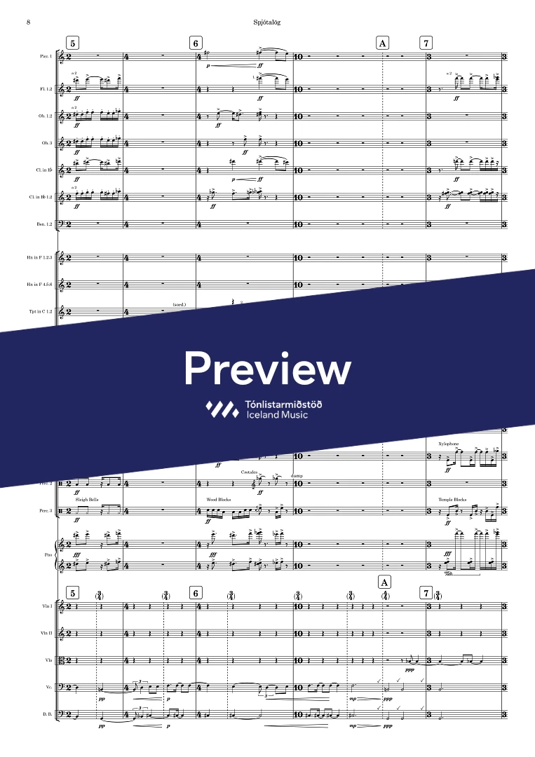 Instrumentation 2(+picc.),3,3(Eb-cl.)2(cfag.) - 6,4,3,1 - tmp. - perc(3). - pno. - str.