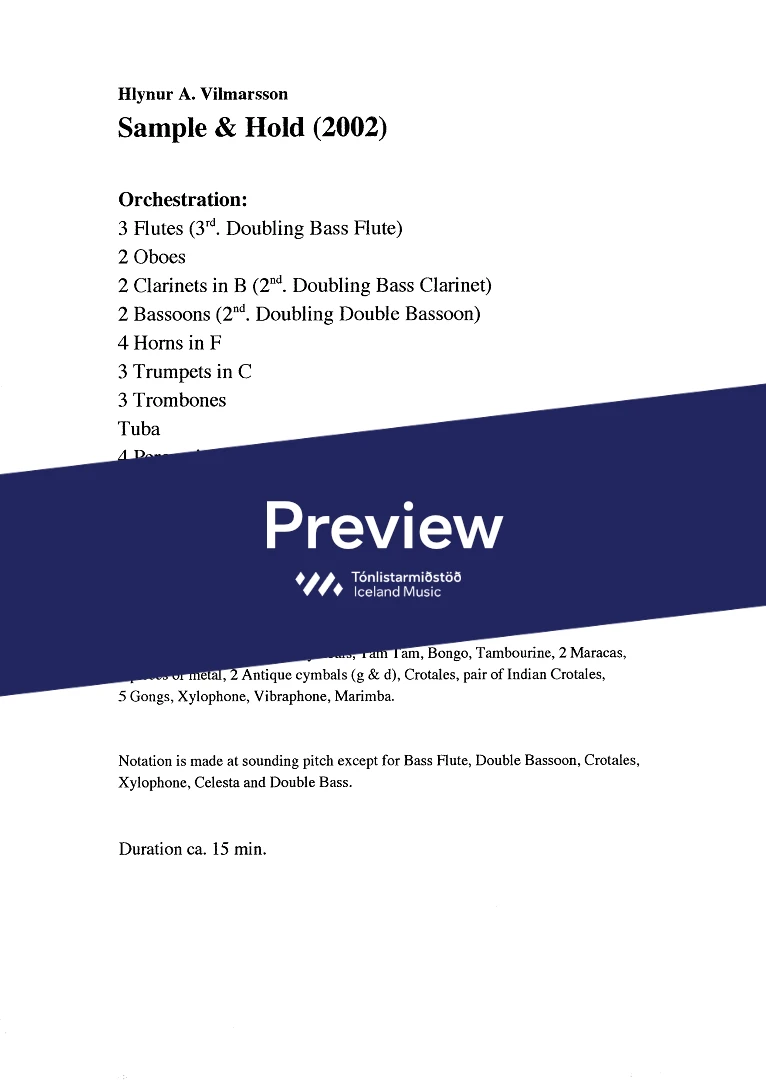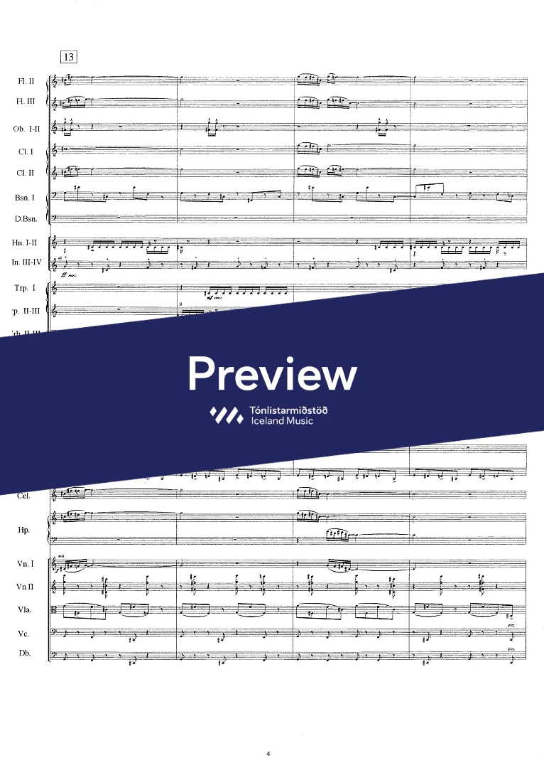 Instrumentation 3,2,2,2,- 4,3,3,1, - perc.(4) - pno-cel. - hp. - str.