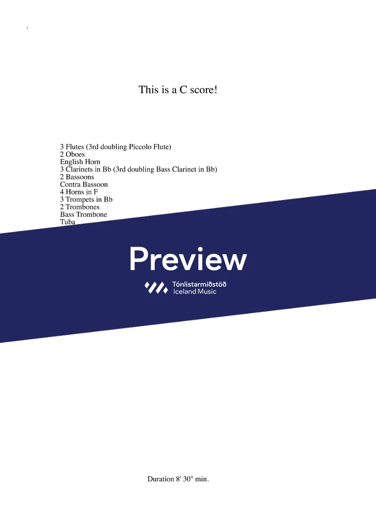 Instrumentation 3(picc.)3(c.ang.)3(b.cl.)3(c.fag) - - 4,3,3,1 - hp. - tmp. - perc. - str.