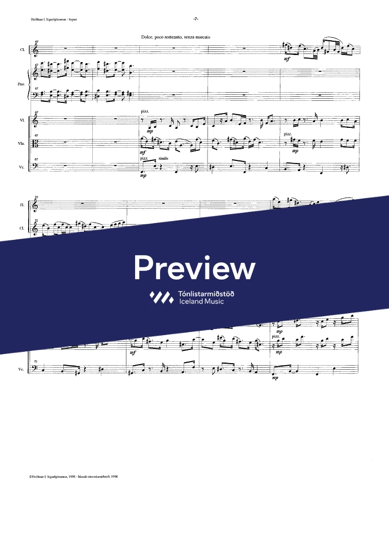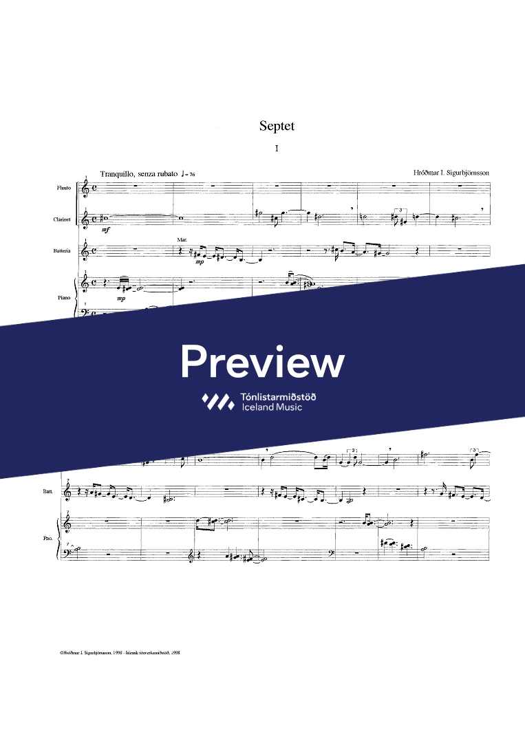 InstrumentationFlute, Clarinet in Bb, Percussion, Piano, Violin, Viola, Cello