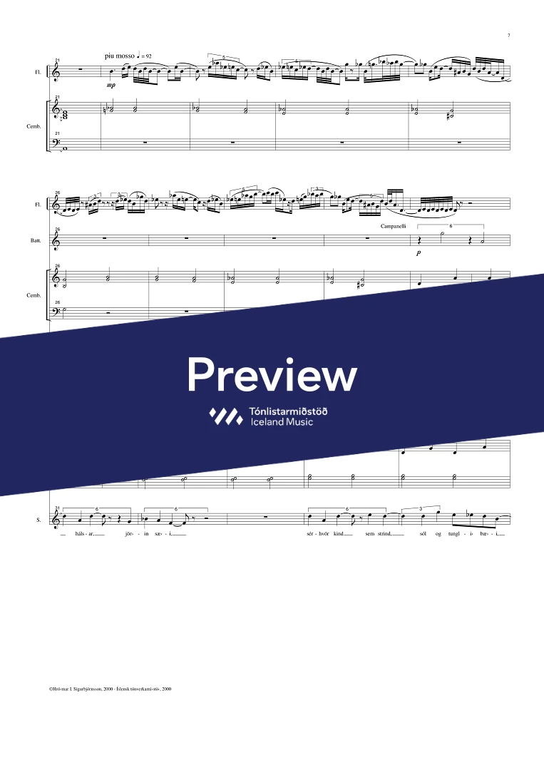 InstrumentationFlute, Oboe, French Horn, Trumpet in Bb, Trombone, Percussion, Harpsichord, Soprano, Tenor, Bass, Violin, Viola, Cello, Double Bass