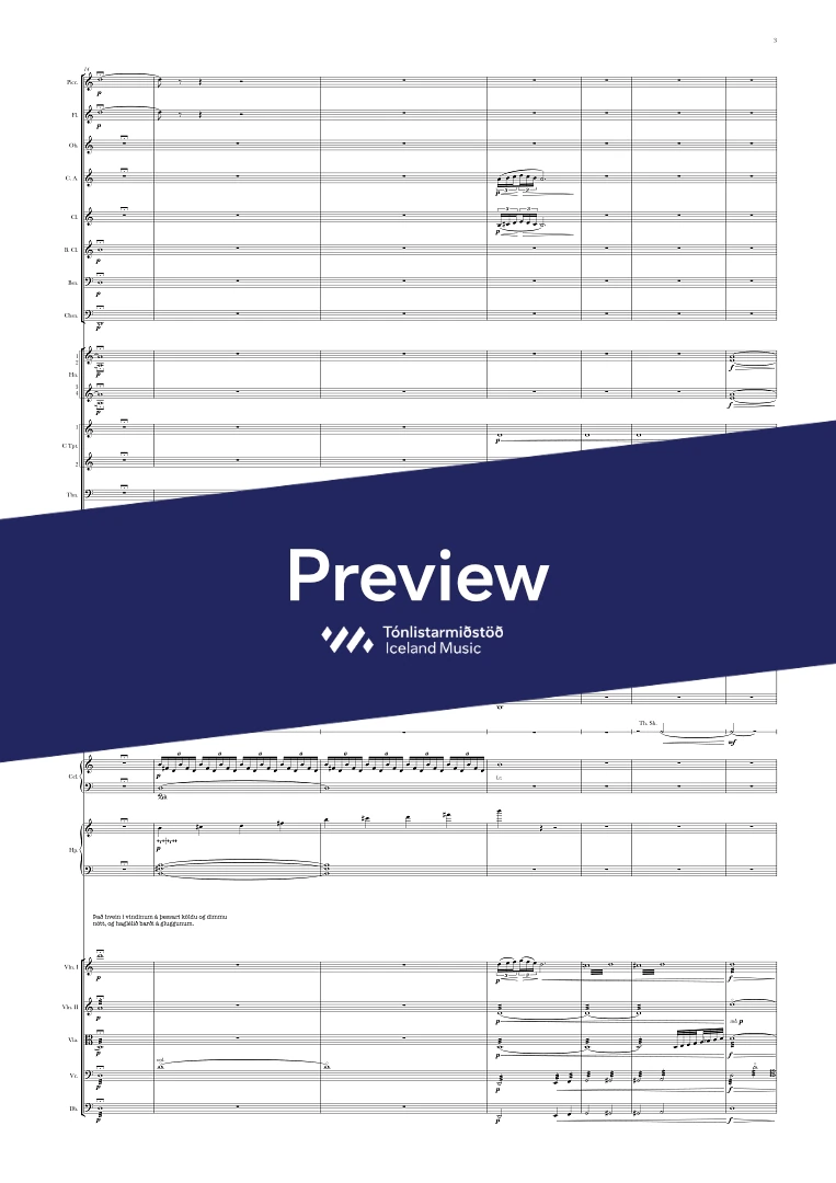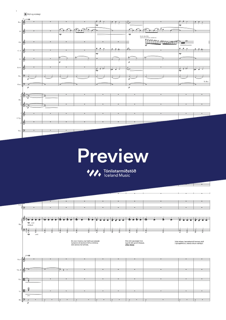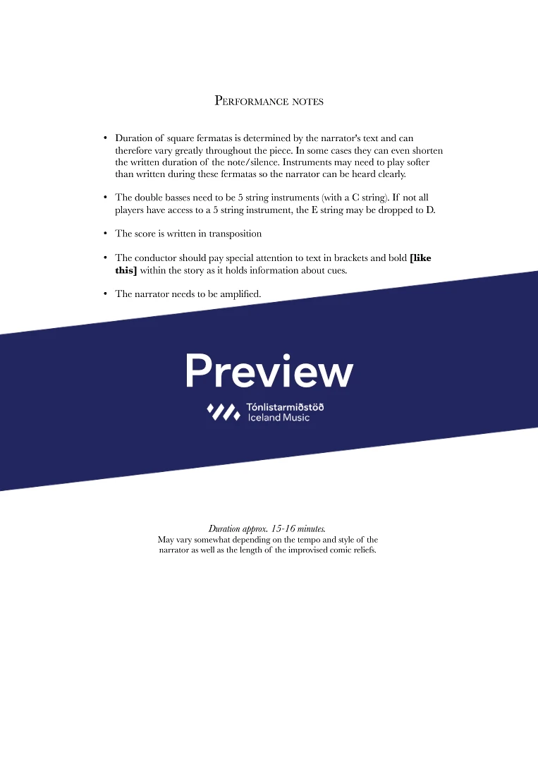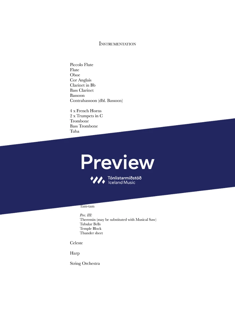 1, picc.,1, c-ang.1, bcl.,1 cbn - 4,2,2,1 - tmp. - perc.(3) - cel. - hp. - narrator - str.