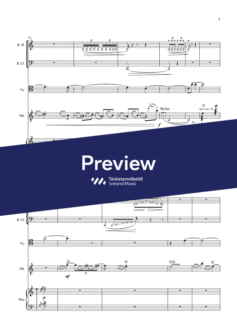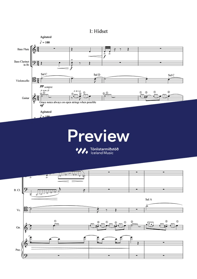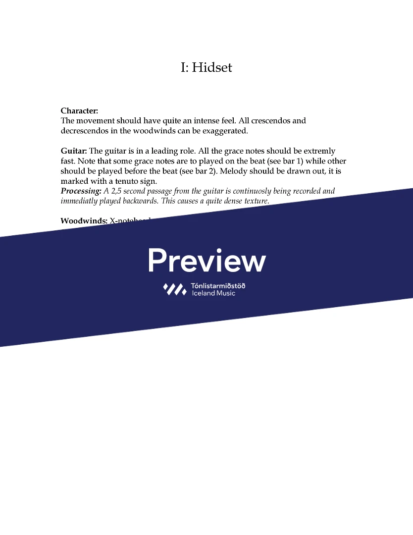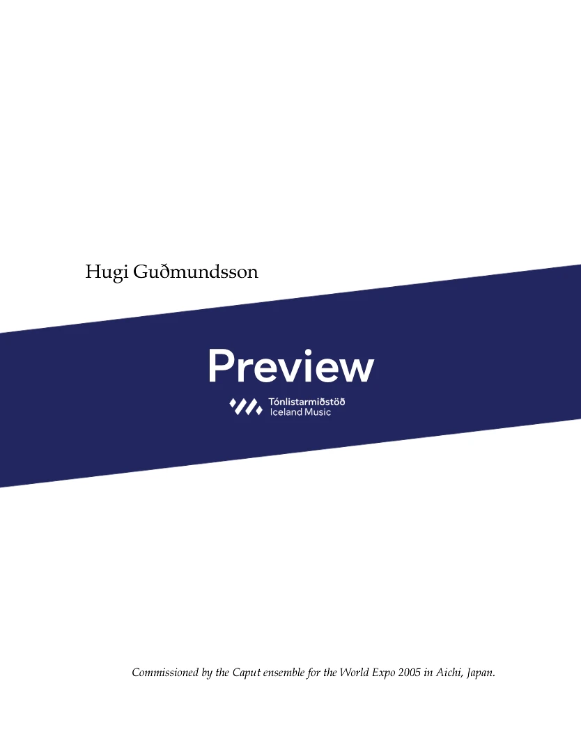For sheet music, the electronic files needed for performance or further enquiries contact CRESCENDO at info@crescendo.is.