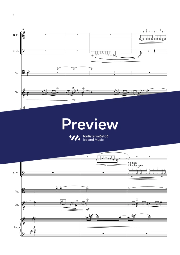 InstrumentationBass Flute, Bass Clarinet, Piano, Guitar, Electronics, Cello