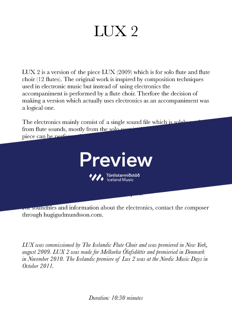 For sheet music and further enquiries contact CRESCENDO at info@crescendo.is.