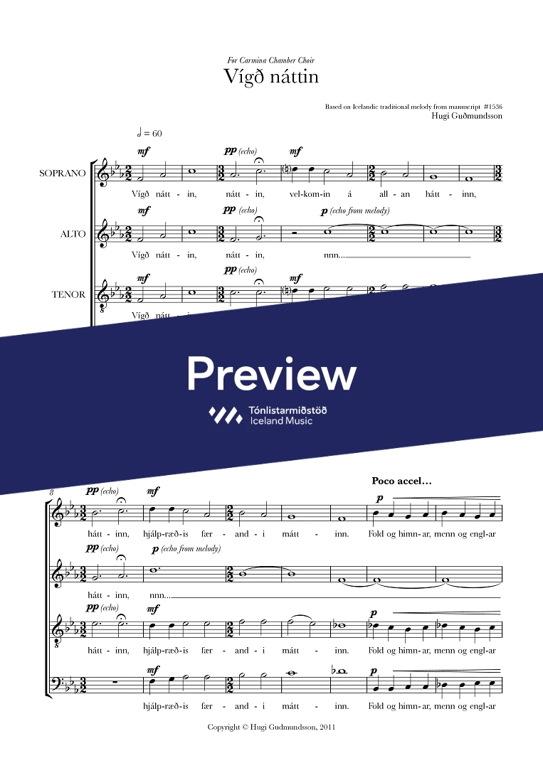 For sheet music and further enquiries contact CRESCENDO at info@crescendo.is.