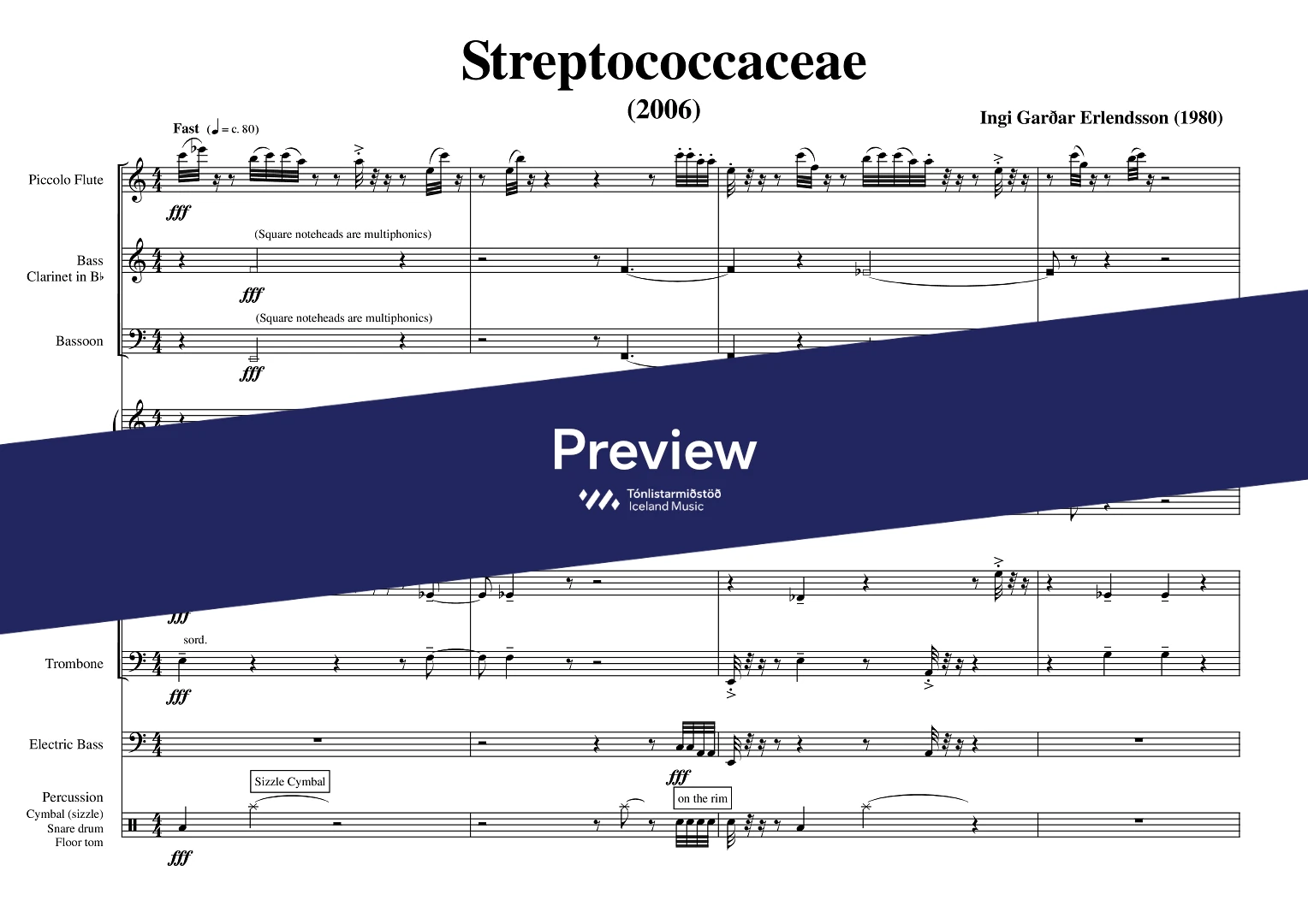 InstrumentationPiccolo Flute, Bass Clarinet, Bassoon, Trumpets, Trombone, Percussion, Piano, Harpsichord, Electric Bass