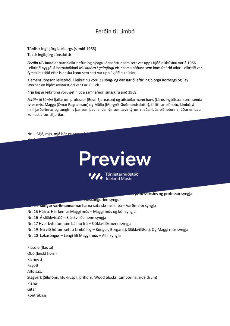 InstrumentationFlute, Piccolo Flute, Oboe, English horn, Clarinets, Bassoon, Alto Saxophone, Percussion, Piano, Guitar, Voice, Double Bass