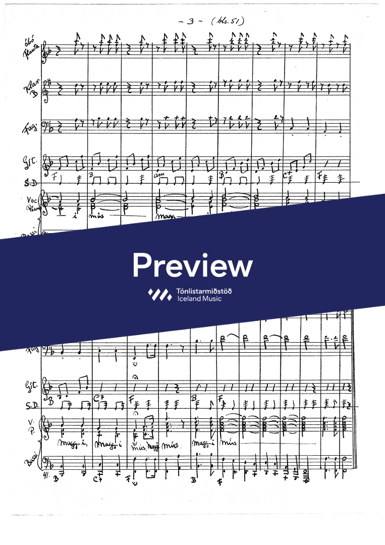 InstrumentationFlute, Oboe, Clarinets, Bassoon, Percussion, Piano, Guitar, Voice, Double Bass