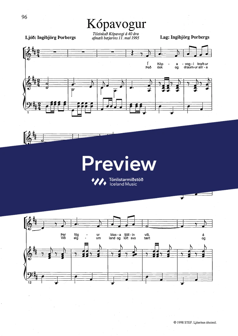 Tileinkað Kópavogi á 40 ára afmæli bæjarins 11. maí 1995