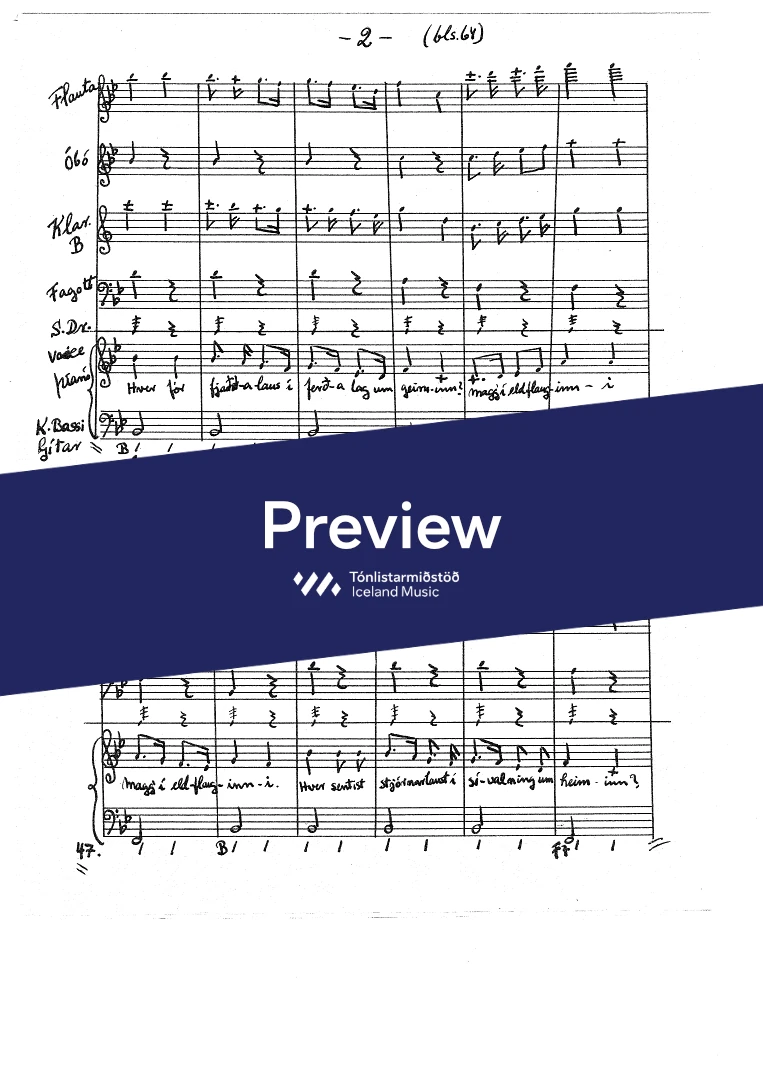 InstrumentationFlute, Oboe, Clarinets, Bassoon, Percussion, Piano, Guitar, Voice, Double Bass