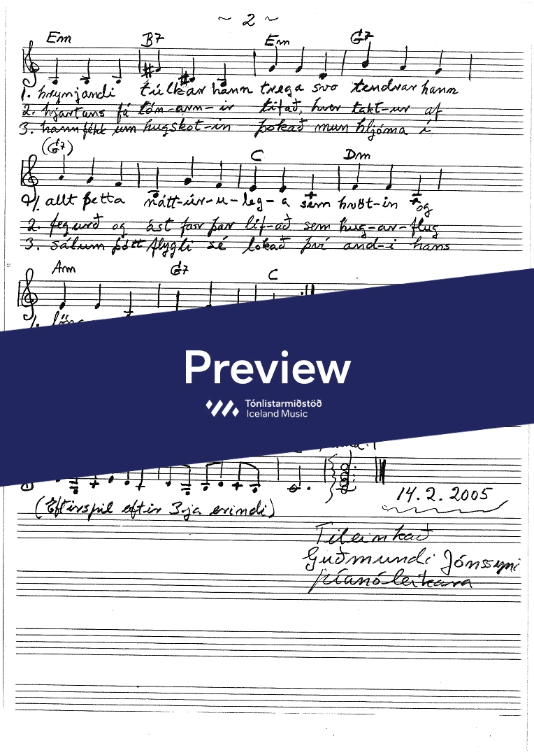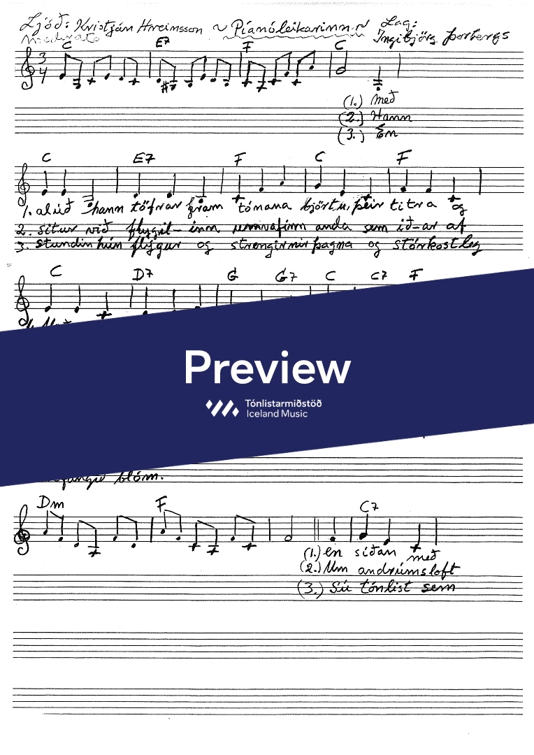 Text sampleMeð alúð hann töfrar fram tónana