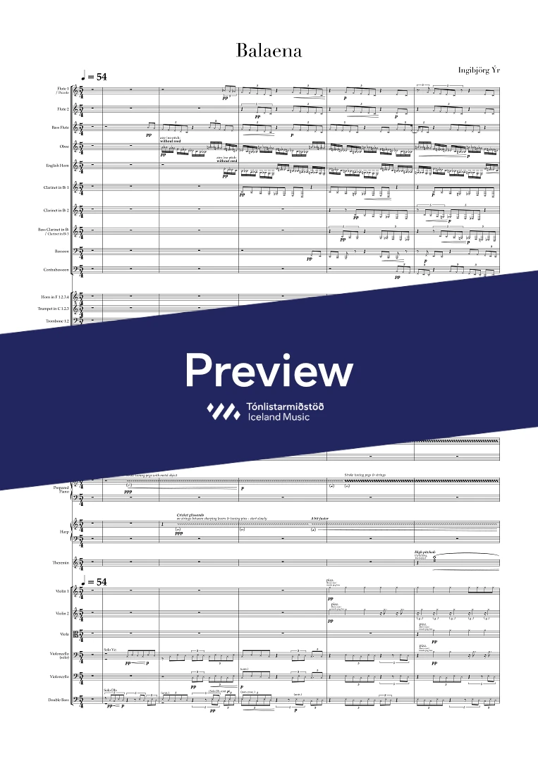 Instrumentation 3(Picc. B.fl.).2(C.A.).3(B.Cl.).2(Cbsn) - 4.3.3(Btb.). - 3 perc. - 2 pno(Celesta). - Hp. - Theramin - Strings