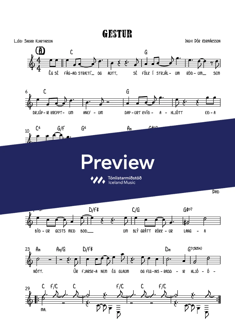 Text sampleÉg sé fágað stræti og autt