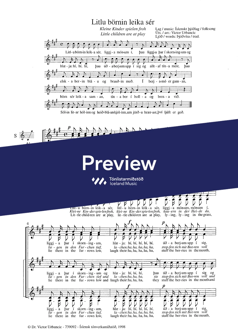 Text sampleLitlu börnin leika sér, liggja mónum í