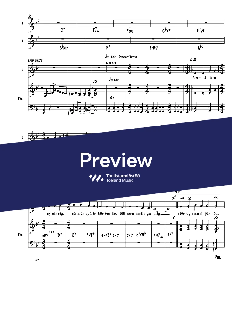 Categories Voice/s + more than 1 instrument, Vocal music, Leadsheet, Jazz, Folk music Arr., Chamber works