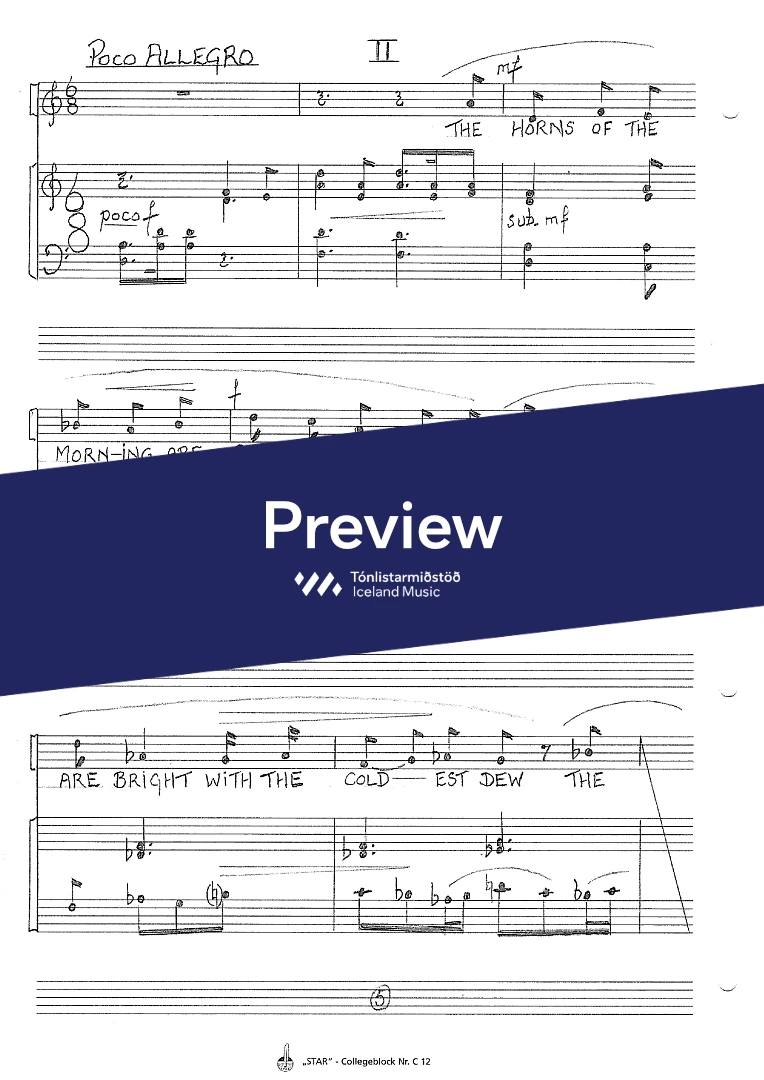 1(picc./afl.)1(c-ang.)1(Bcl.)0 - 0.0.0.0 - perc.(1) - synth./pno,hpschd./honky-tonk, celesta - string quintet - solo voices