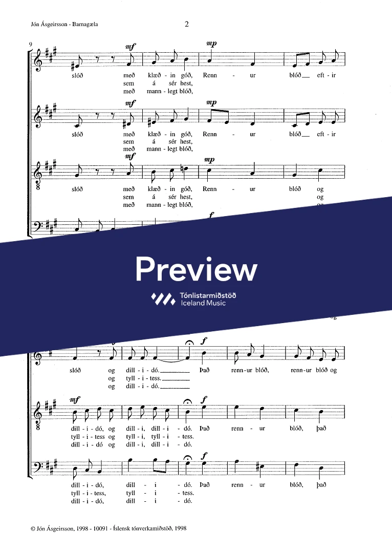 Text sampleRennur blóð eftir slóð, rennur blóð eftir slóð og dilla ég þér jóð