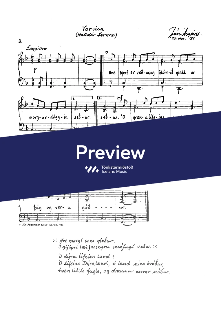 Icelandic folk song - Íslenskt þjóðlag, Folk verse - Þjóðvísa, Jón Ásgeirsson