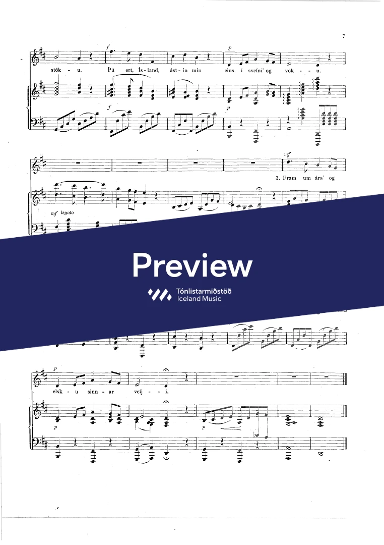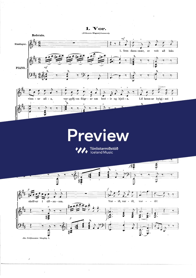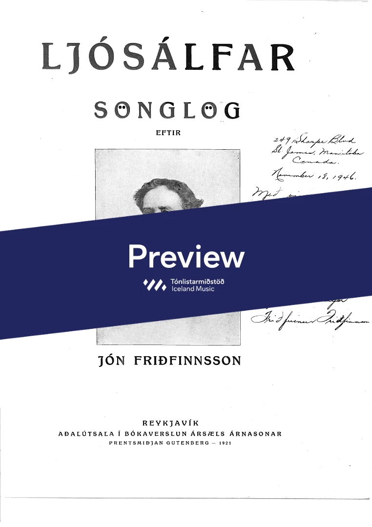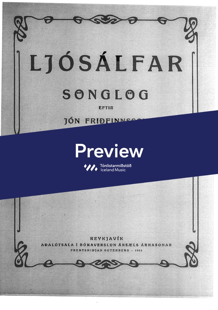 Composer Jón Friðfinnsson Year composed1921 Categories Vocal music, Choral music InstrumentationPiano, Voice Catalogue no.852-900 ISMN-