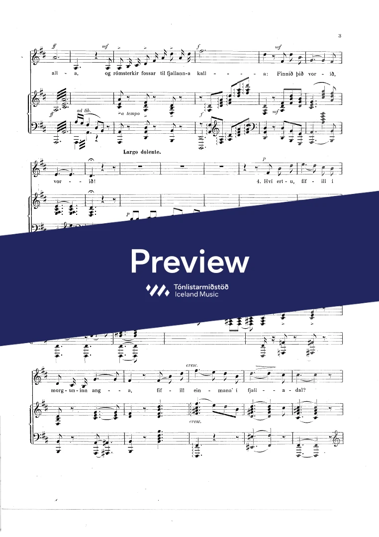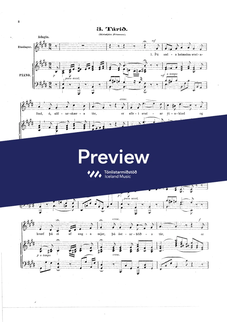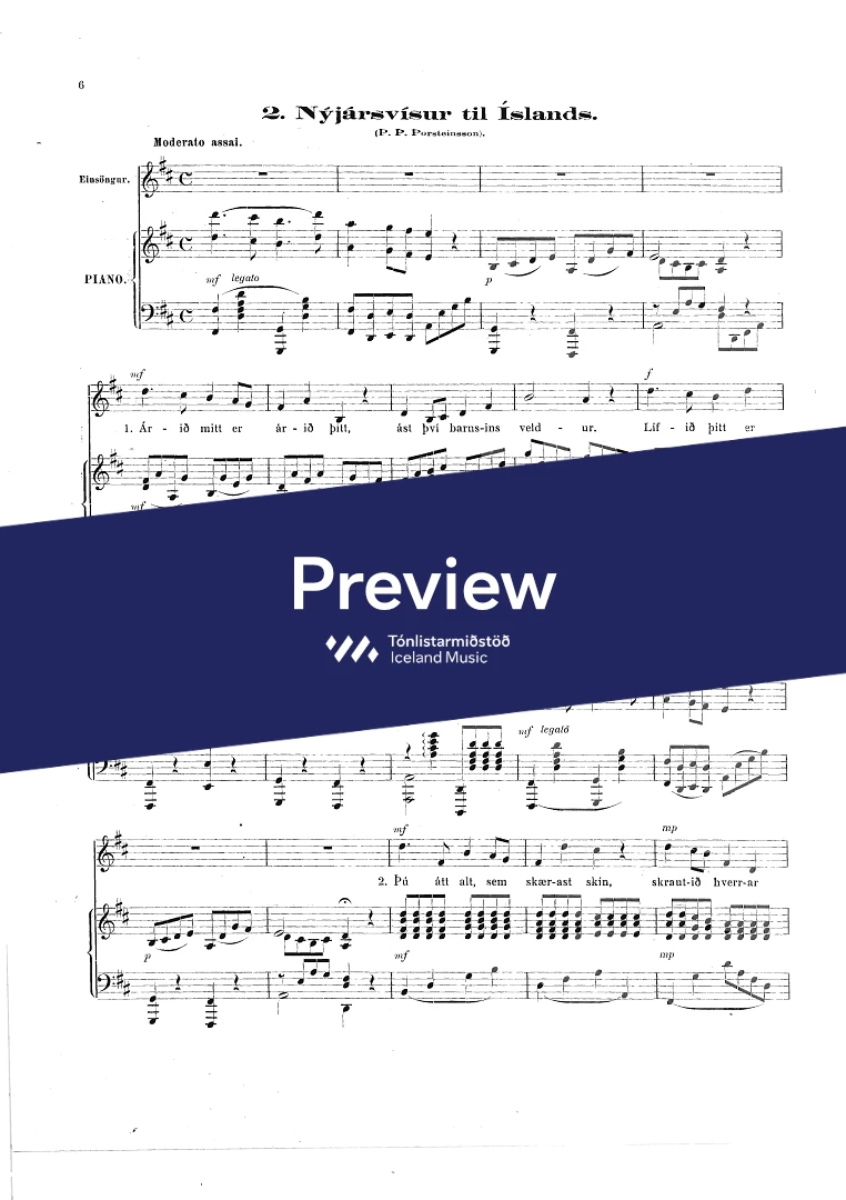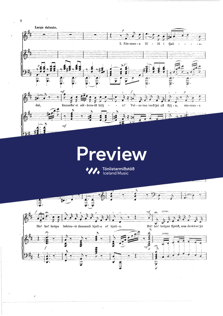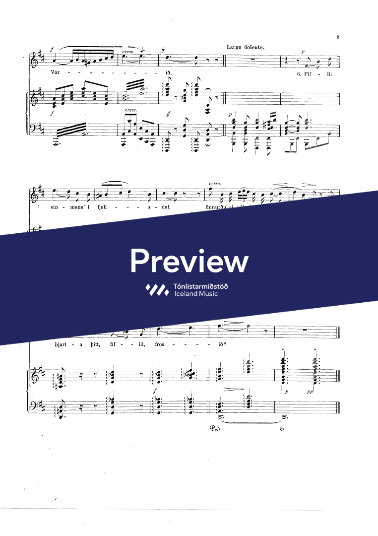 Composer Jón Friðfinnsson Year composed1921 Categories Vocal music, Choral music InstrumentationPiano, Voice Catalogue no.852-900 ISMN-
