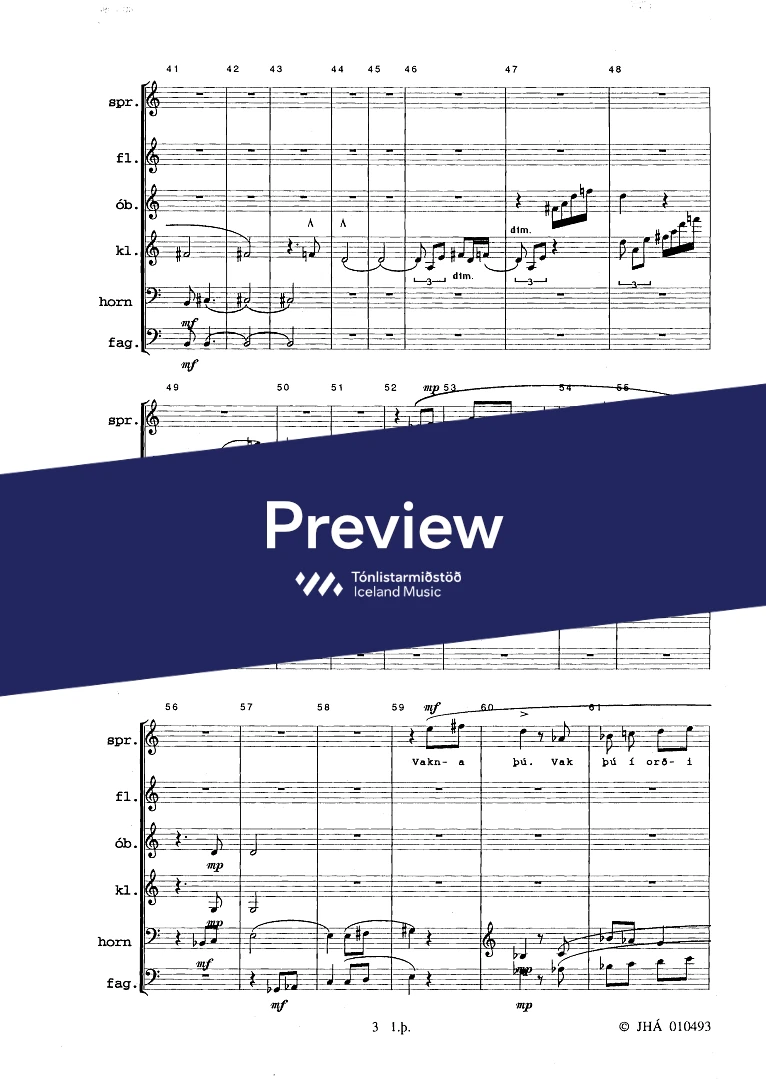 InstrumentationFlute, Oboe, Clarinets, Bassoon, French Horn, Voice, Soprano