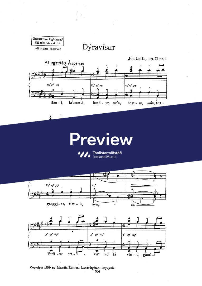 Jón Leifs, Folk verse - Þjóðvísa, Jón Leifs