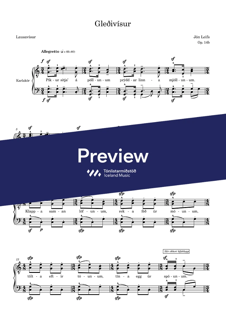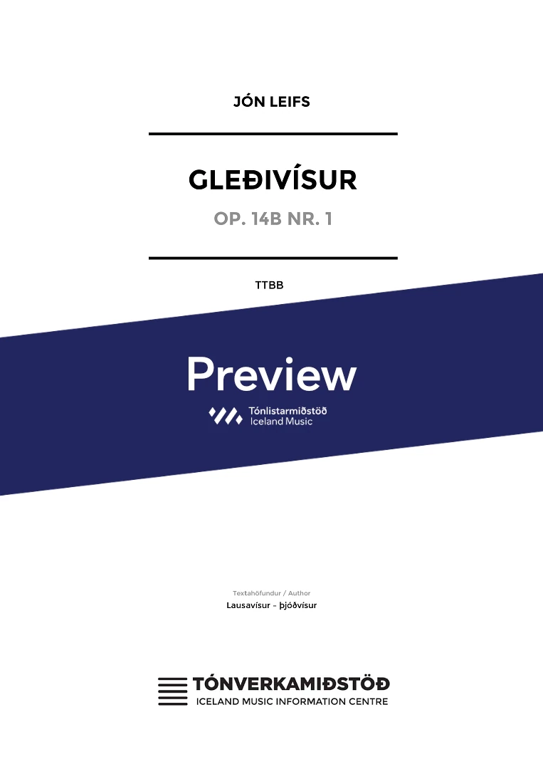 This is an arrangement for male choir of the first of the two piano pieces "Ný rimnadanslög" Op. 11 033-011