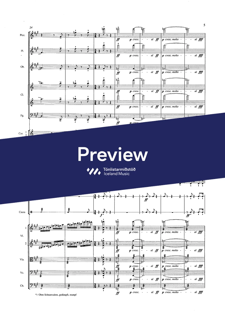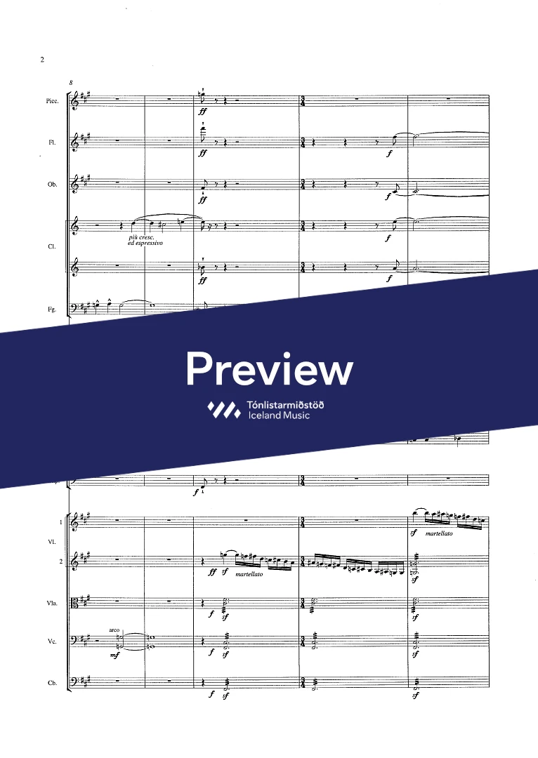Price for score only. For orchestral rental materials, please contact itm@mic.is