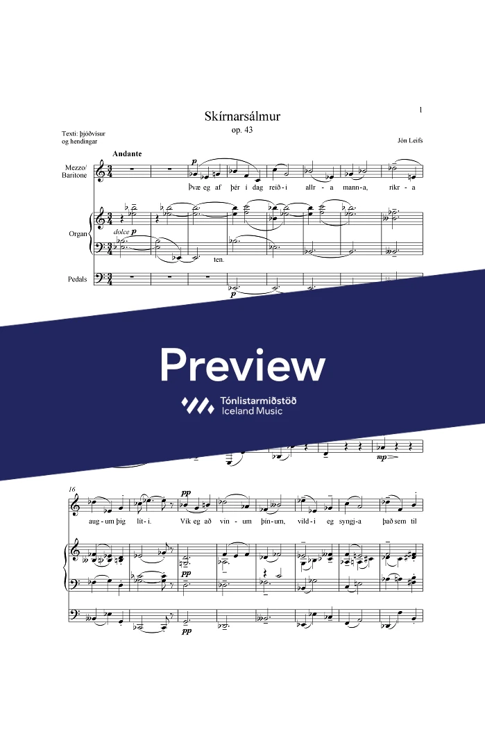 InstrumentationOrgan, Voice, Mezzo-soprano, Baritone