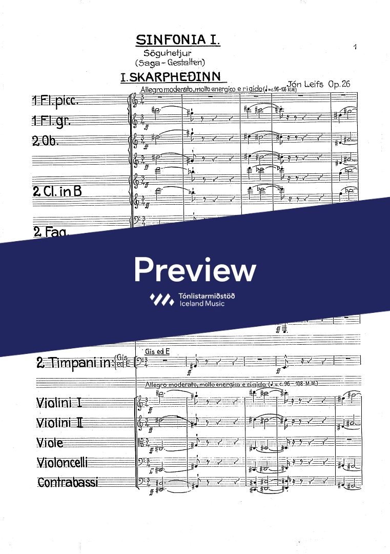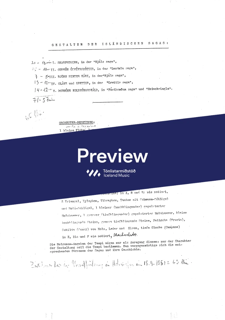 Please note that the score & parts of one movement (scherzo) from this work (Björn at baki Kára) is available as a separate item Björn at baki Kára – 3. Kafli Sögusinfóníunnar