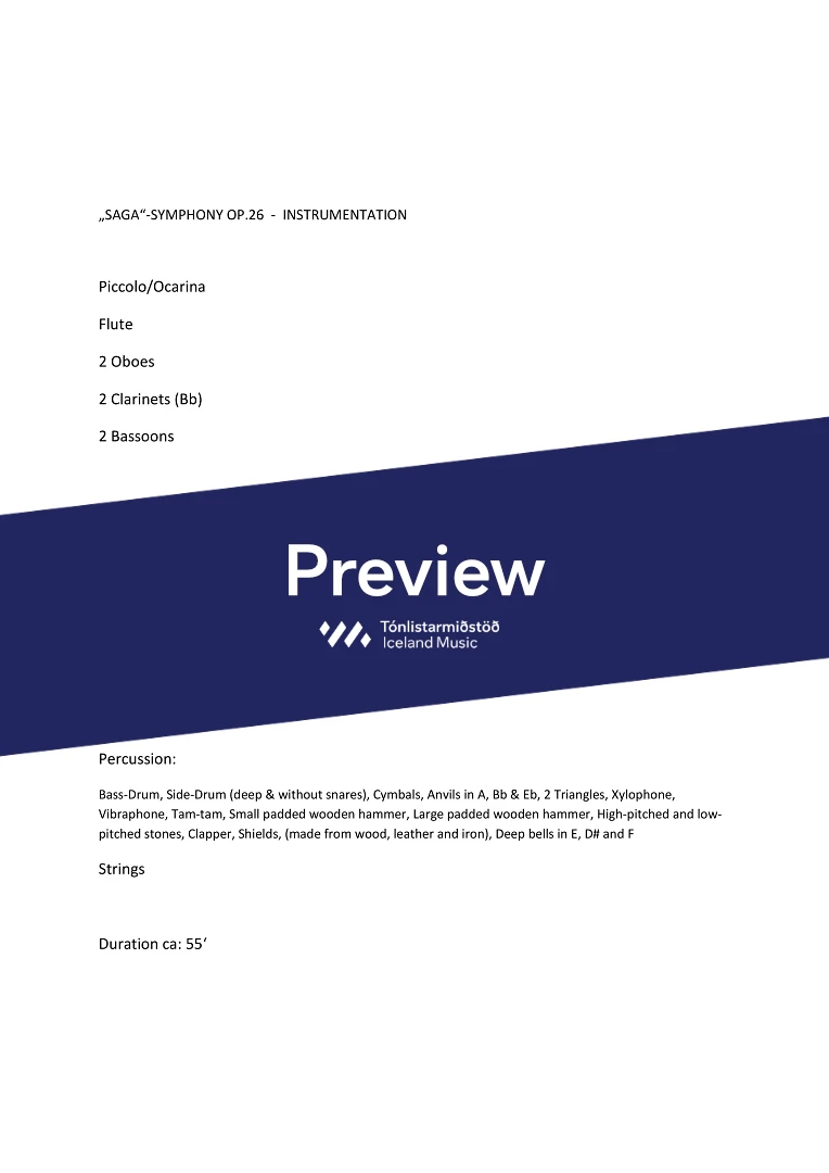 A full list of percussion instruments required (some unique to Leifs) is given in the score.