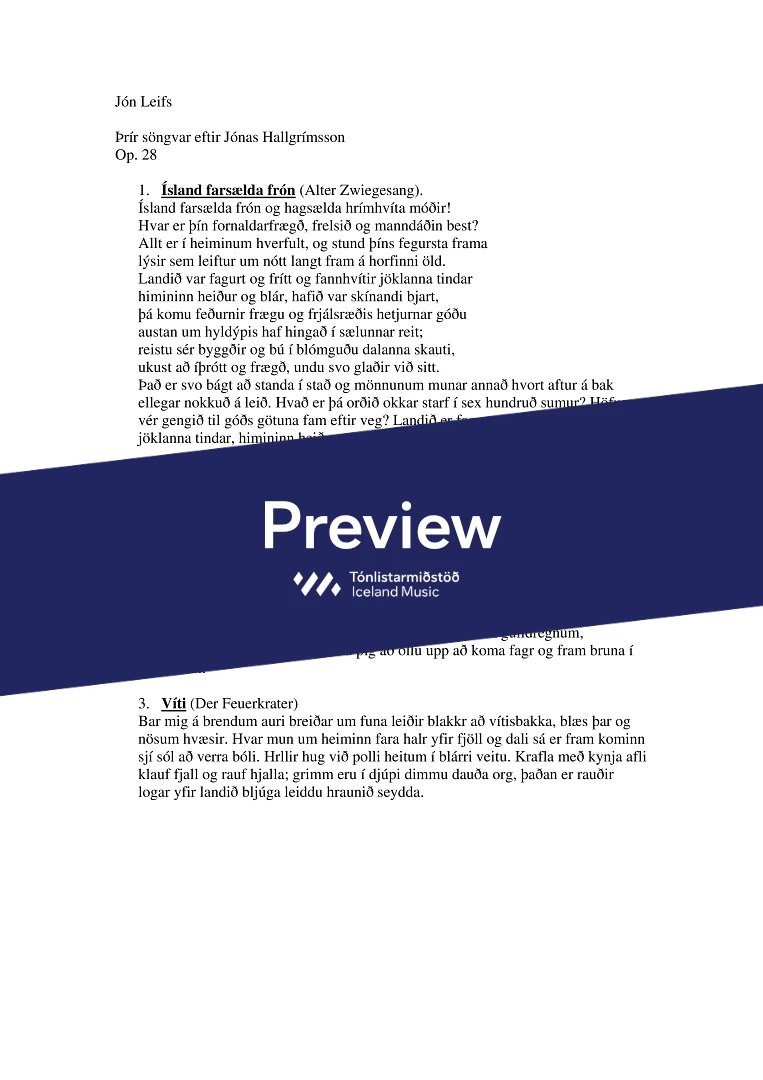 Jón Leifs, Folk verse - Þjóðvísa, Jón Leifs