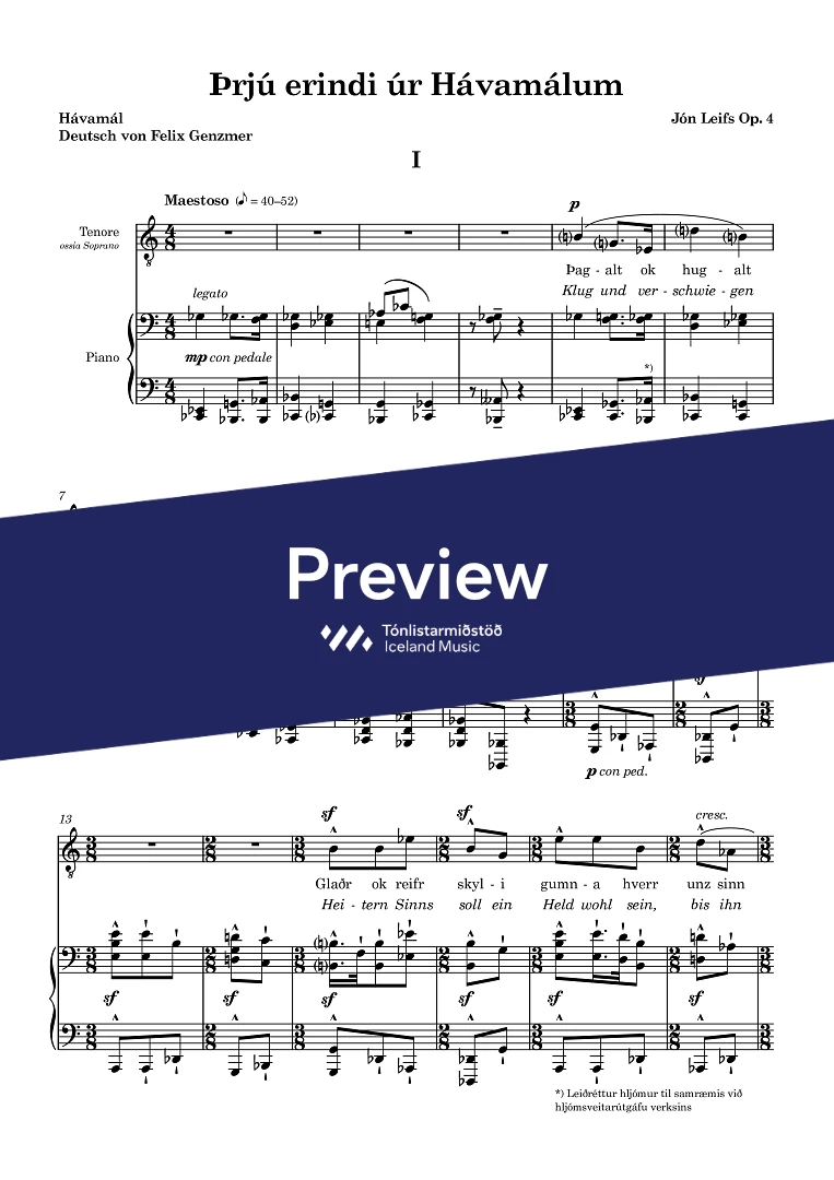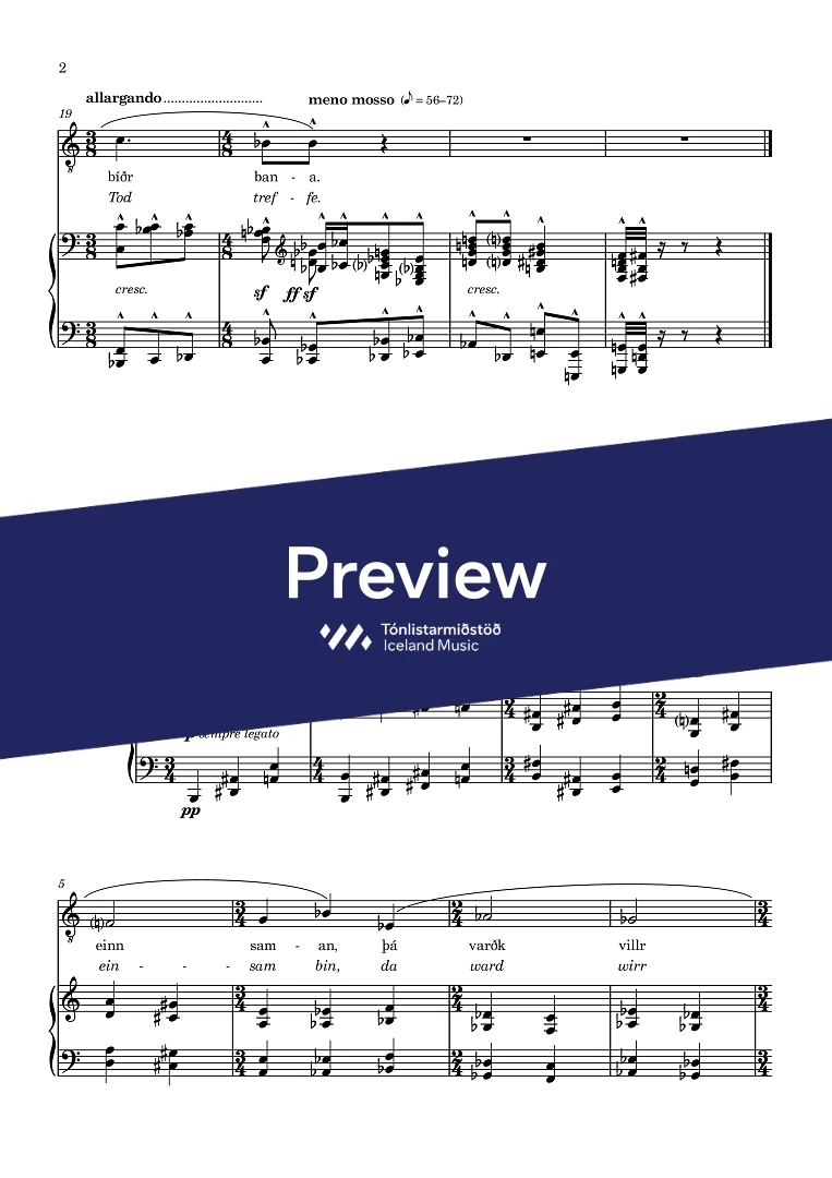 This piece also exists in Leifs' own arrangement for voice & orchestra, with the lyrics translated to German (see: 033-925)
