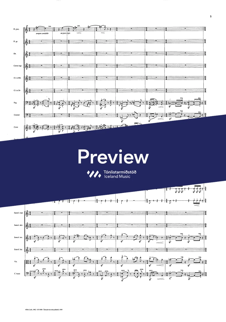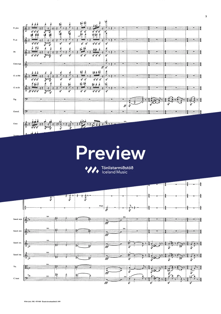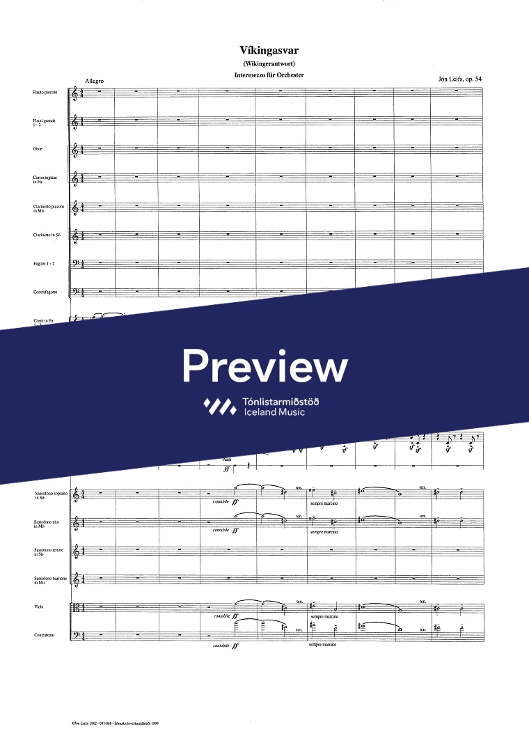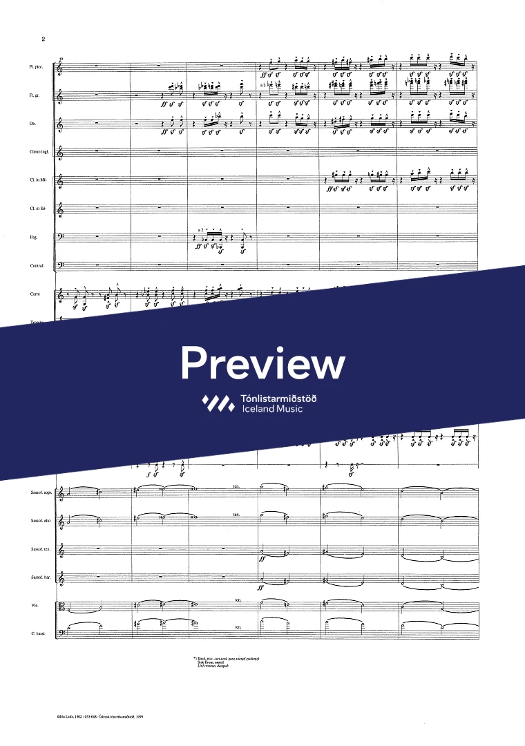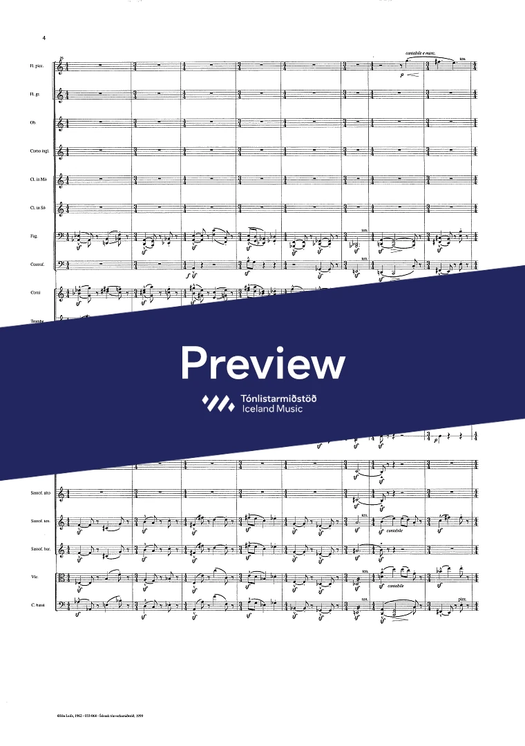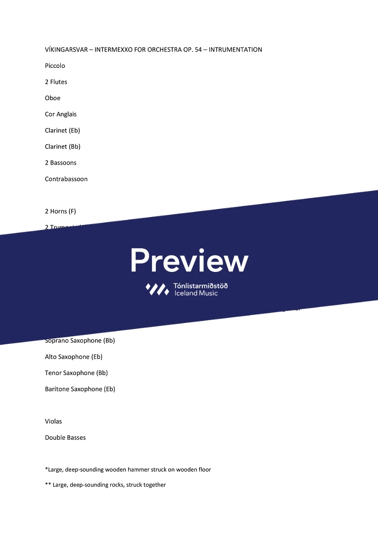 Instrumentation 2+picc..1+e-h..2,.4Sax.2+cbn.- 2.2.2.1 - tmp. - perc. vla. - cb.