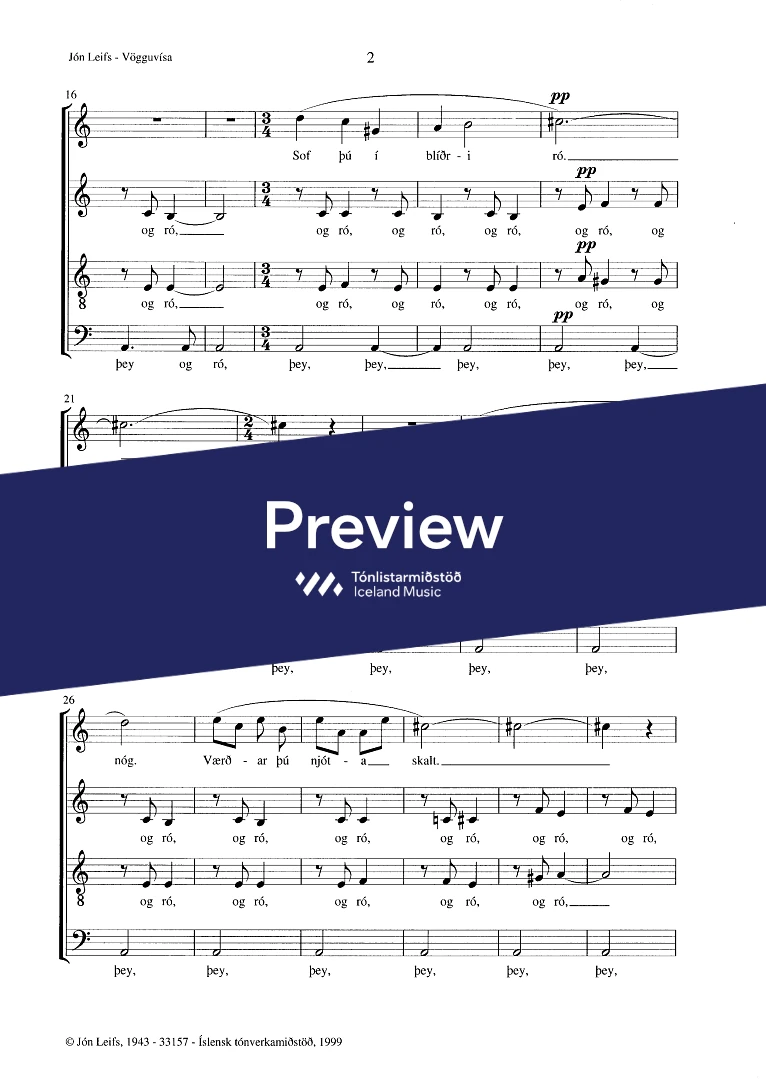 This is an arrangement of a song for voice and piano, which Leifs gave to his daughter Líf, when she was born. See also: Tveir söngvar, for low voice & Tvö lög, for high voice.