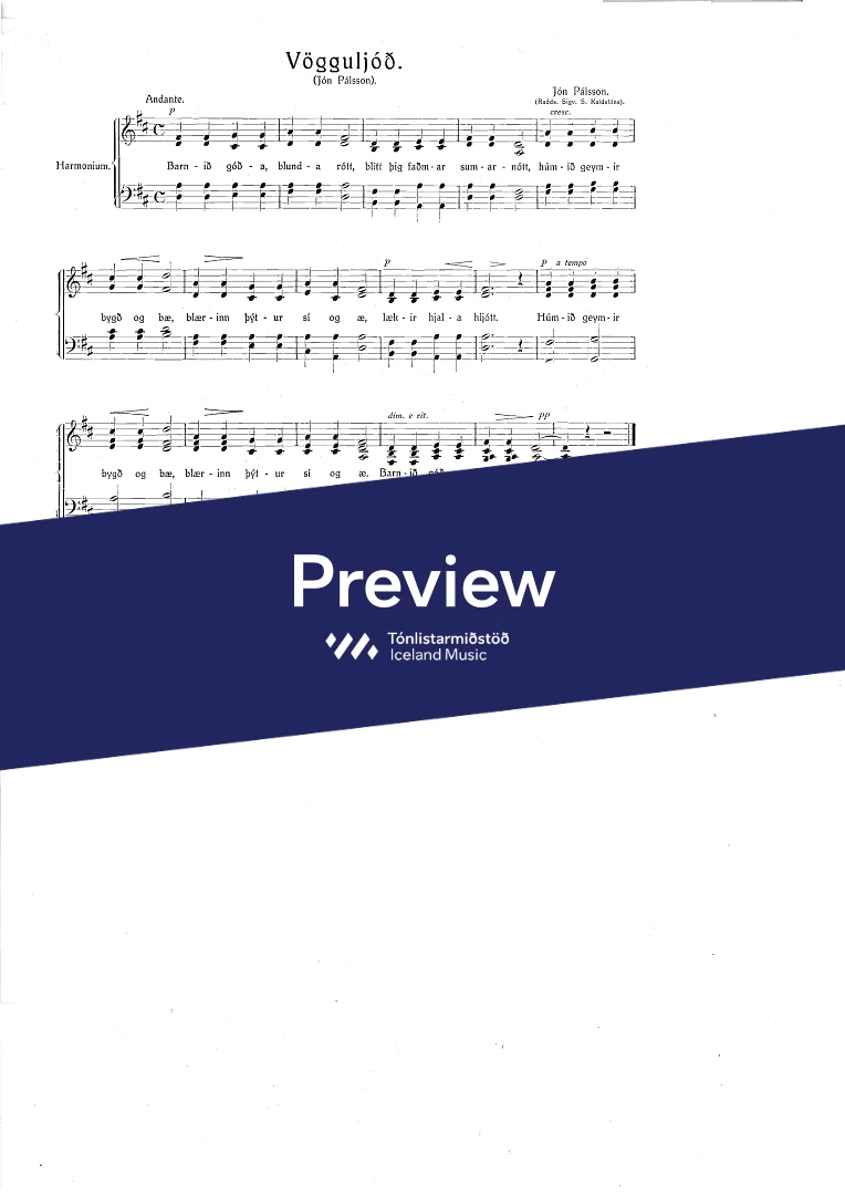 Composer Jón Pálsson Year composed- Text sampleBarnið góða, blunda rótt Categories Solo works InstrumentationPiano Catalogue no.747-002 ISMN-