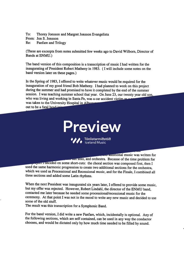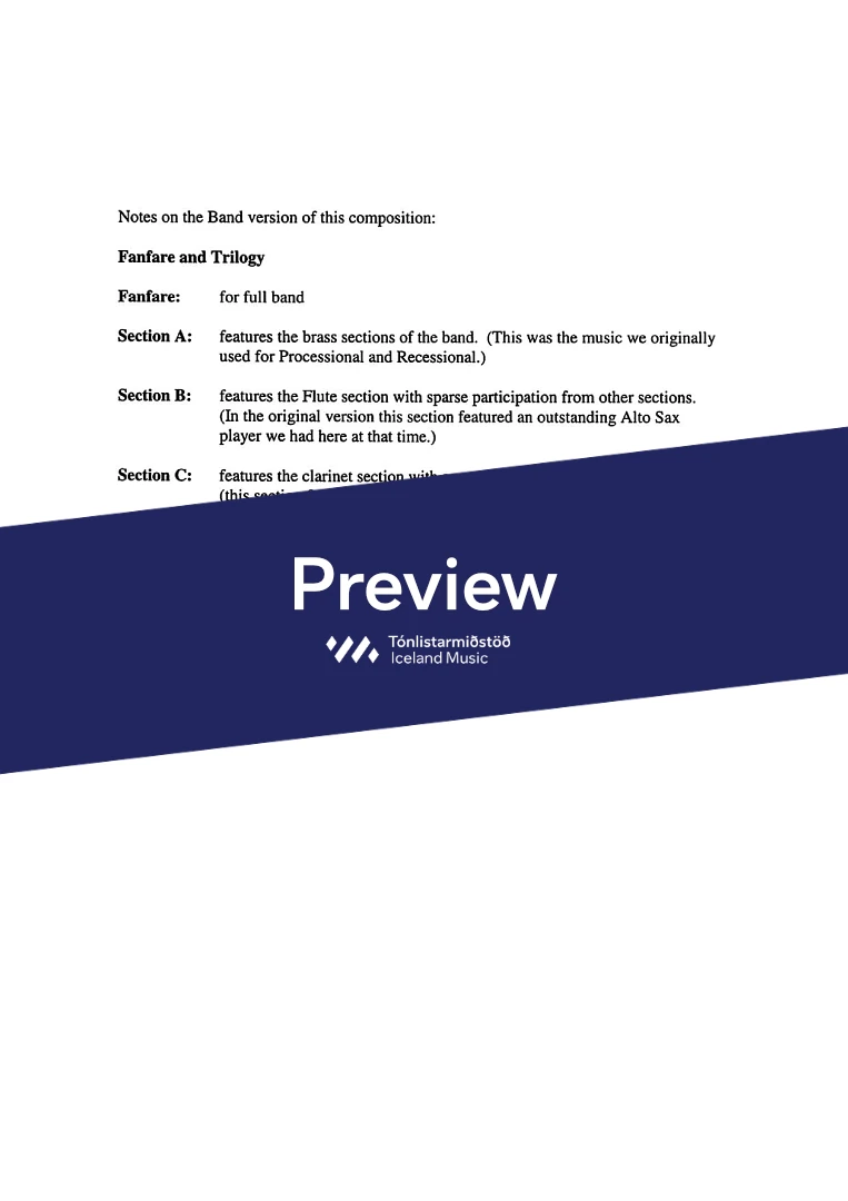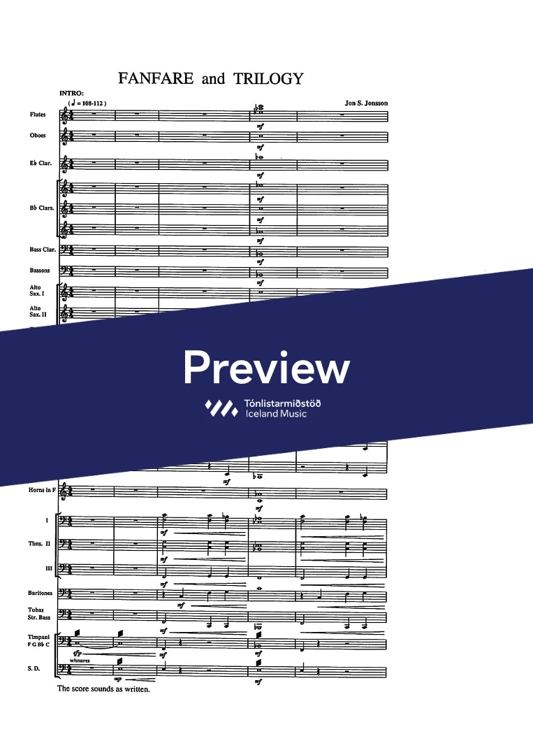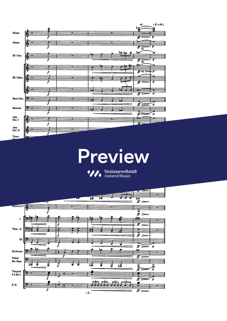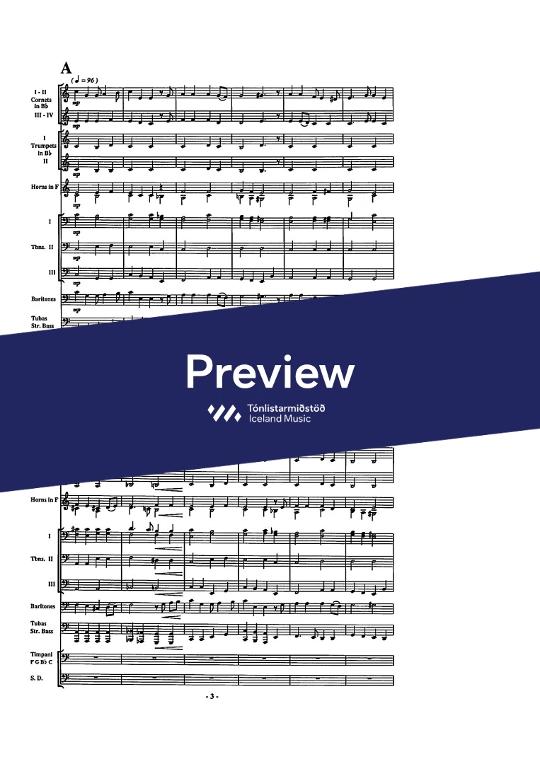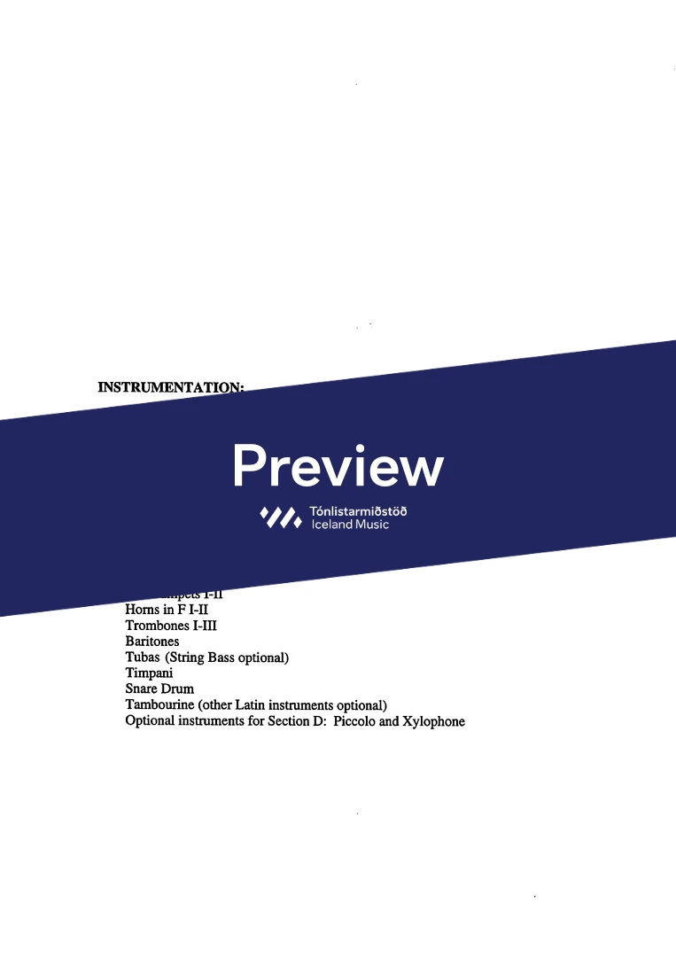 Instrumentation 3.1.4.Bcl.1. - 4 Sax. 4 Corn. 2 Tpt. 2 Hn. 3 Tbn. Bar. Tuba - Cb. - Tmp. S.D.