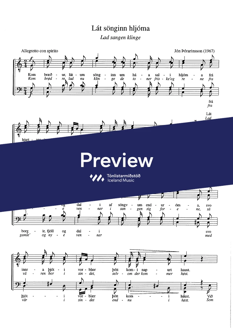 Text sampleKom bræður, látum sönginn um háa sali hljóma