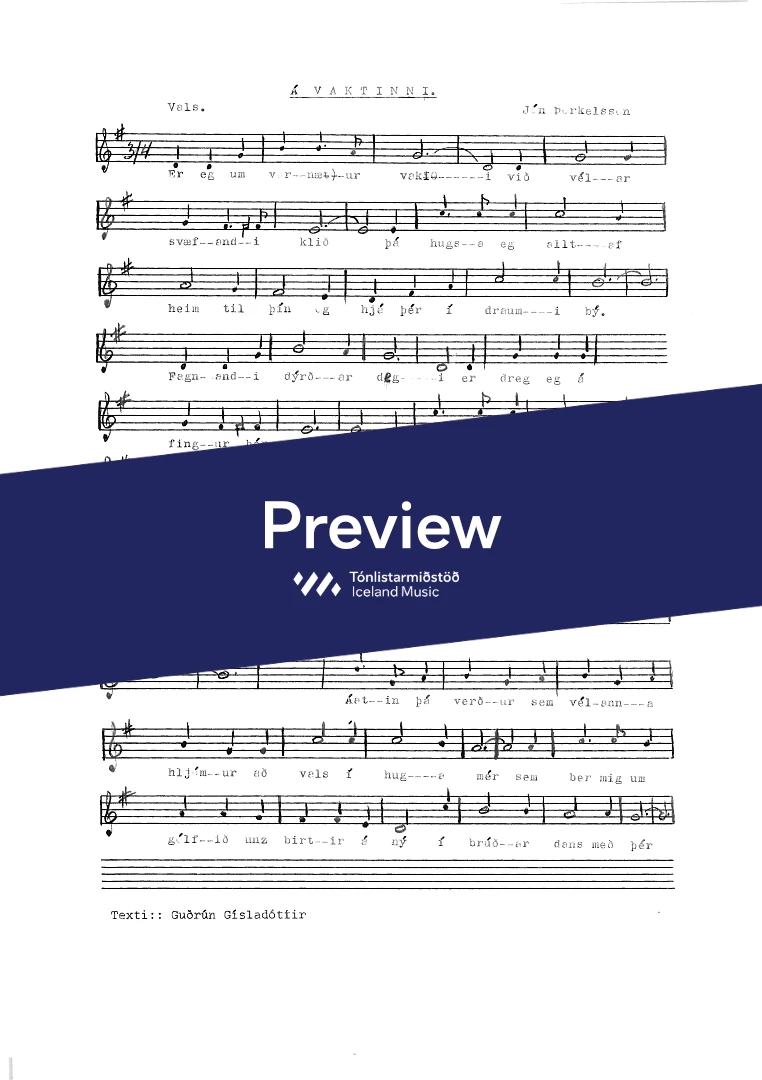 Composer Jón Þorkelsson Year composed- Text sampleEr ég um vornætur vaki Categories Vocal music InstrumentationVoice Catalogue no.102-002 ISMN-