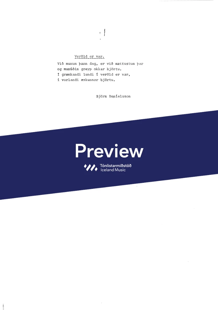 Composer Jón Þorkelsson Year composed- Text sampleVið munum þann dag Categories Choral music InstrumentationMale choir Catalogue no.102-001 ISMN-