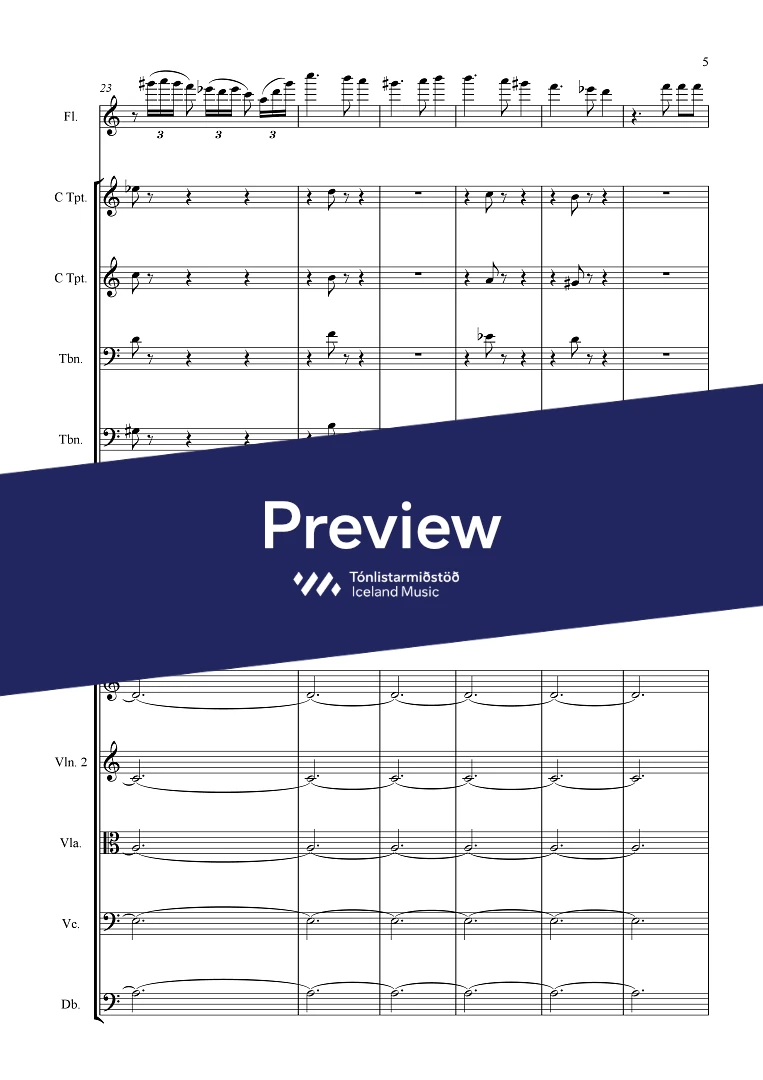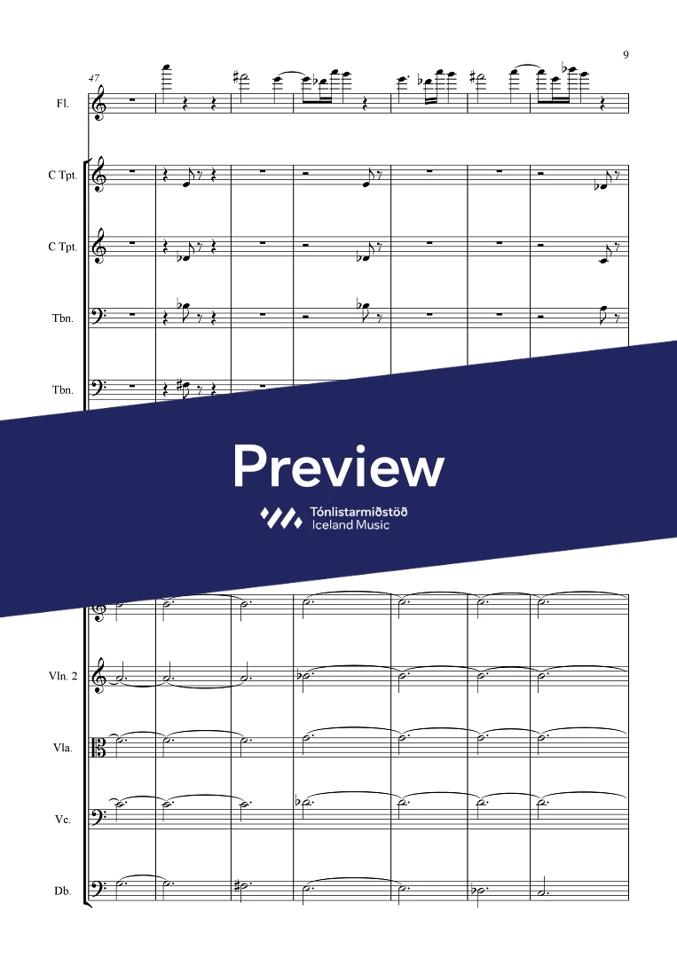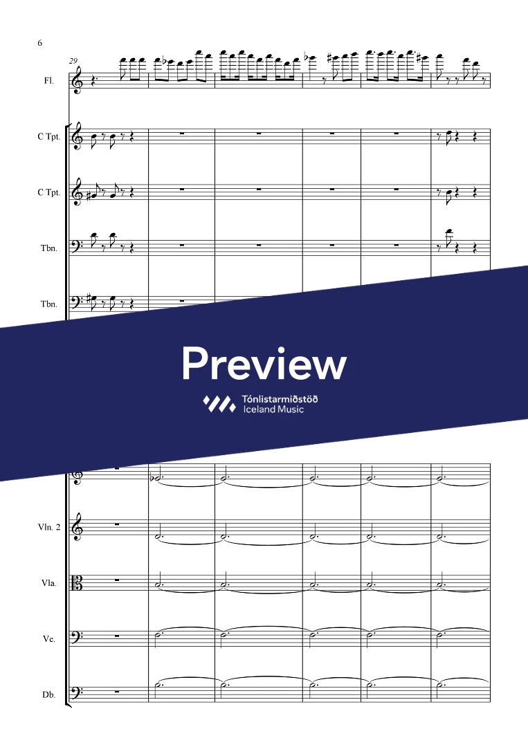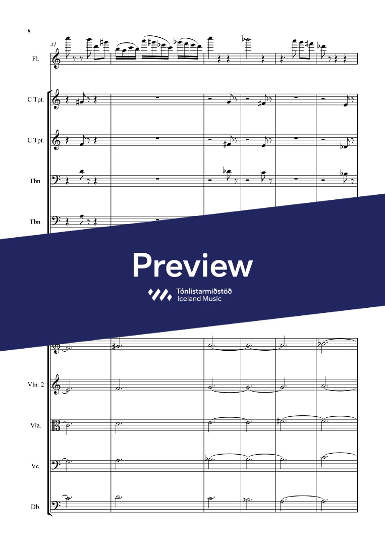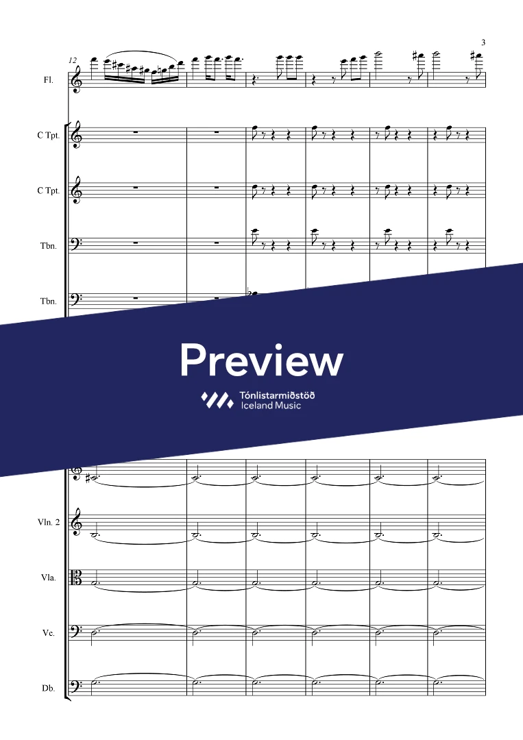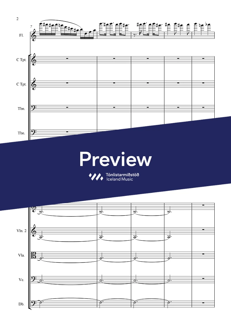 Instrumentation 0,0,0,0 - 0,2,2,1 - fl. solo - perc. - str.